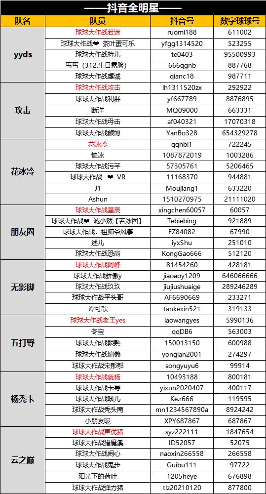 近期球球大作战官方,召集了各大平台主播,短视频平台主播,组织了一场全明星大师赛,主要平台有如下: