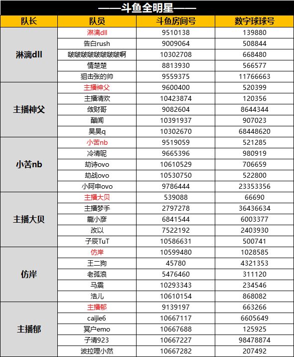 以上便是本次全明星主播大师赛的参赛队伍名单