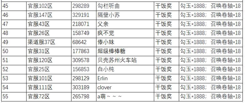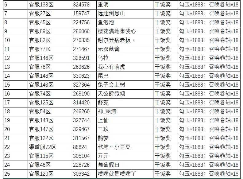 2、干饭奖奖品:勾玉*1888;召唤卷轴*18