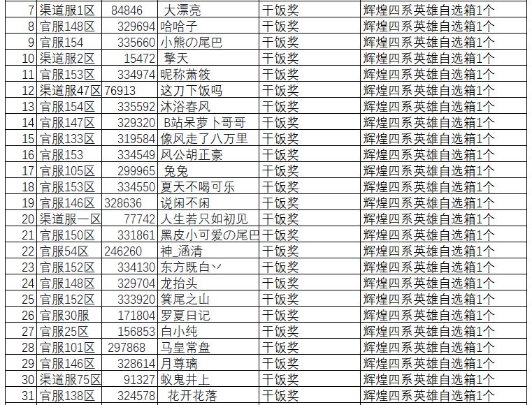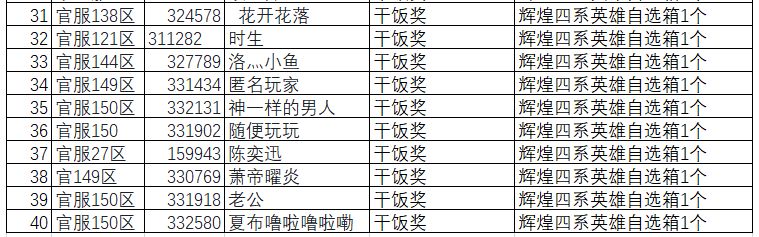 2、干饭奖:所有有效参与的玩家均可获得游戏辉煌四系英雄自选箱1个。
