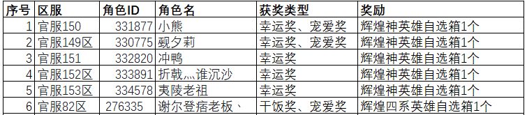 1、幸运奖5名:获得游戏内辉煌神英雄自选箱1个,活动结束后随机抽取5位玩家进行发放。