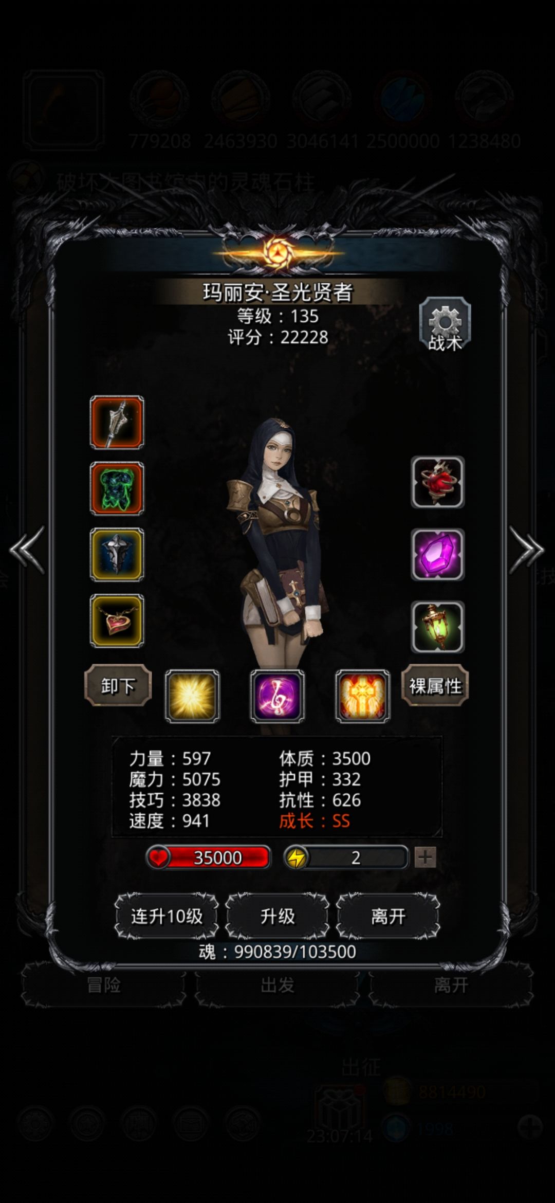 另外这个站位有个好处在于小怪省事,打小怪的时候火刑直接收割剩余最多,圣光始终奶,其余的打单攻最低,火法100奶友方,这样一来三输出第一击都是一个目标,最多两次攻击就把一个小怪打入奶线了,不需要手动再切换火刑的攻击模式,火刑和火法也不需要单体吸血,可以直接堆输出,另外夜魇最好带一个单吸,否则有暴毙的可能,不过如果换成飓风凯,夜魇也不需要单吸,就是没有好的物伤,速度战利品的话,输出有些低