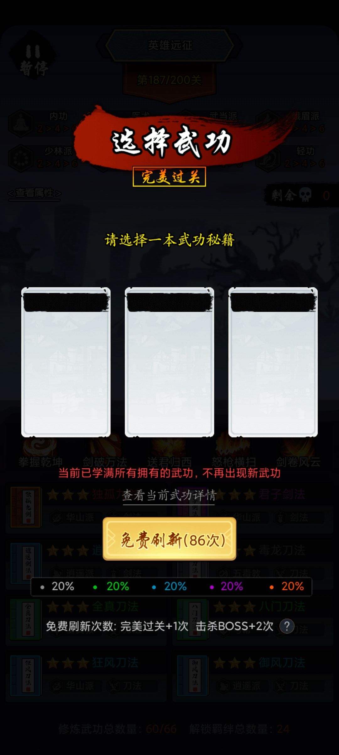 先把大部分武功点到1星,解锁羁绊。然后7大内功2星,八卦和天罡属于武当和六扇。因此只需要点到2星,7大门派属于剑拳刀外枪轻的点一星,7大门派不属于剑拳刀外枪轻的点2星。因为玉女,天罡和八卦会被连带升到三星,所以还需要把非7大派的外功枪法轻功升到2星。这样学一个乾坤阵法能出30多个3星。