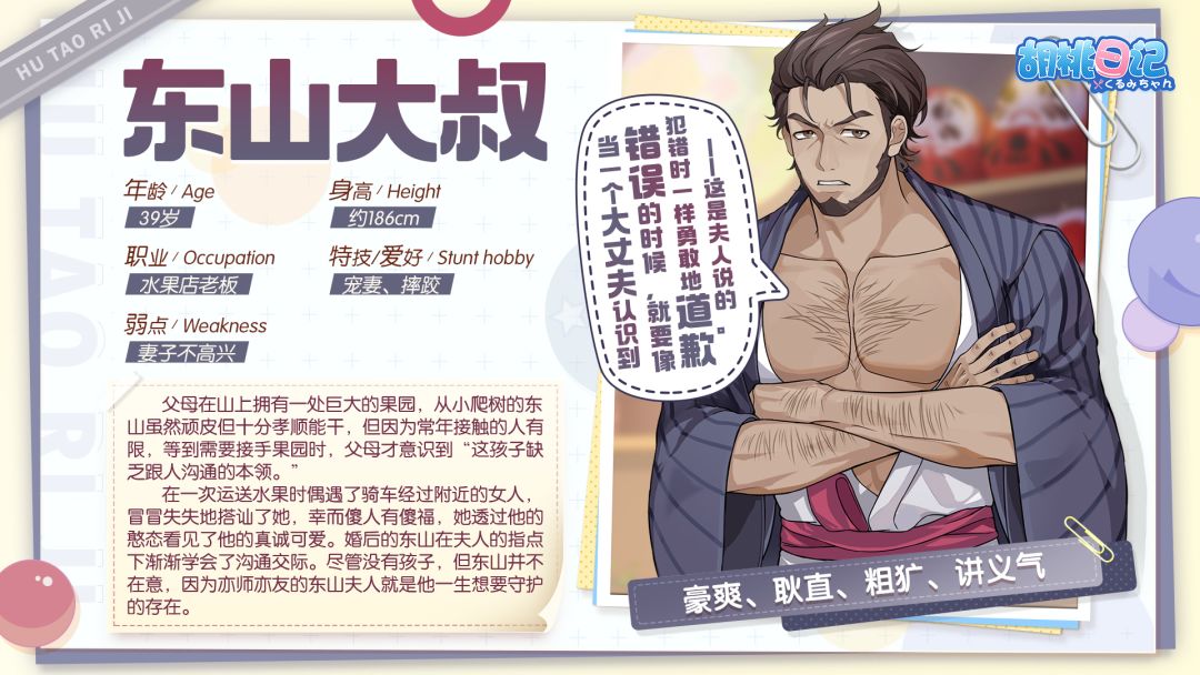 东山大叔在健硕肌肉的外表下却有着一颗孩童般纯真的内心,这样的个性似乎和古灵精怪的胡桃相当合得来?堪称“宠妻狂魔”的东山和我们的缘分似乎始于一个“错误”?其中缘由就请在3月24日来《胡桃日记》全新版本“小院物语”中一探究竟了!