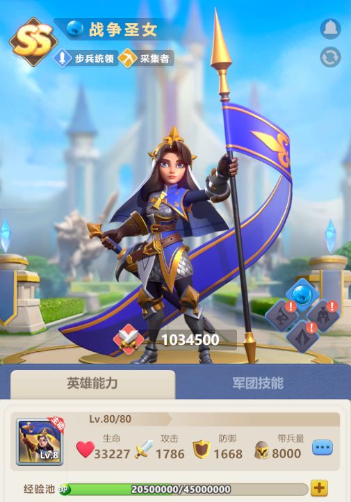由于圣言启示的存在,战争圣女可以给步兵增加攻击力和防御,因此适合统领以步兵为核心的战斗阵容,但她只有一个战斗型出征技能,所以优先级较小,一般处于步兵阵容的三四号位,例如排在常胜之龙、海上玫瑰之后进行上阵。