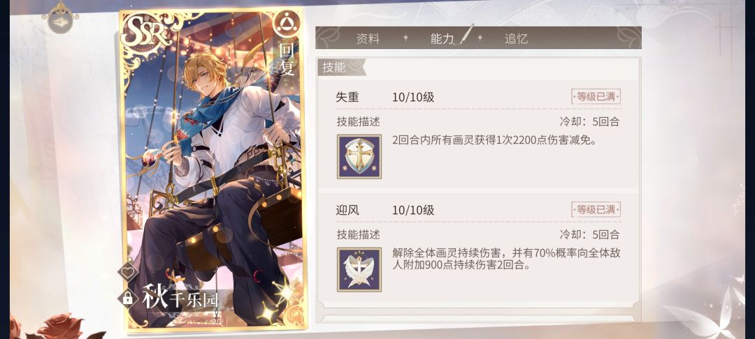 3.秋千乐园。奶卡,一技能免伤,二技能少量给我方减伤,大招回血+加快特技进度。