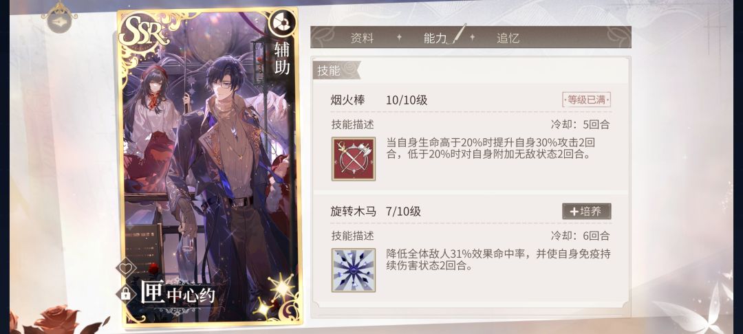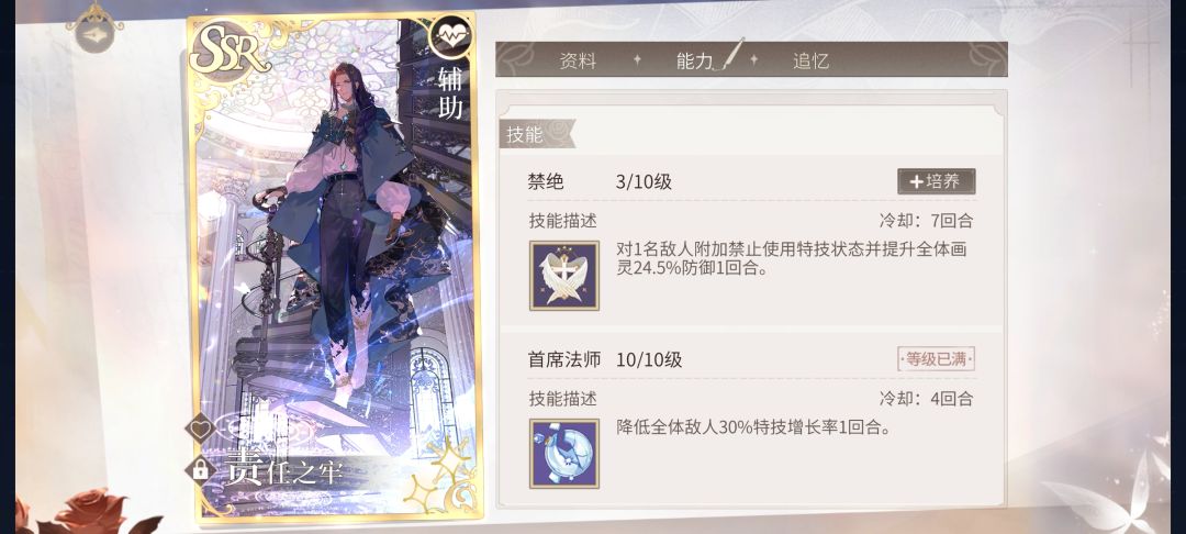 5.责任之牢。一技能禁止一敌方使用特技+我方防御。二技能降低敌方特技进度,减少我方血条压力。