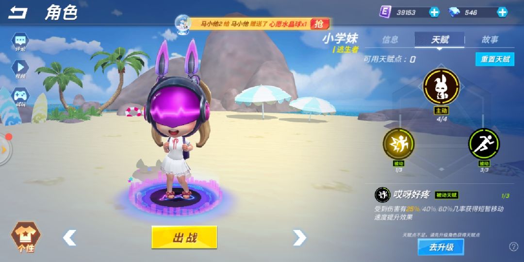 小学妹天赋集中于加速免控,灵活度较高,不易死亡