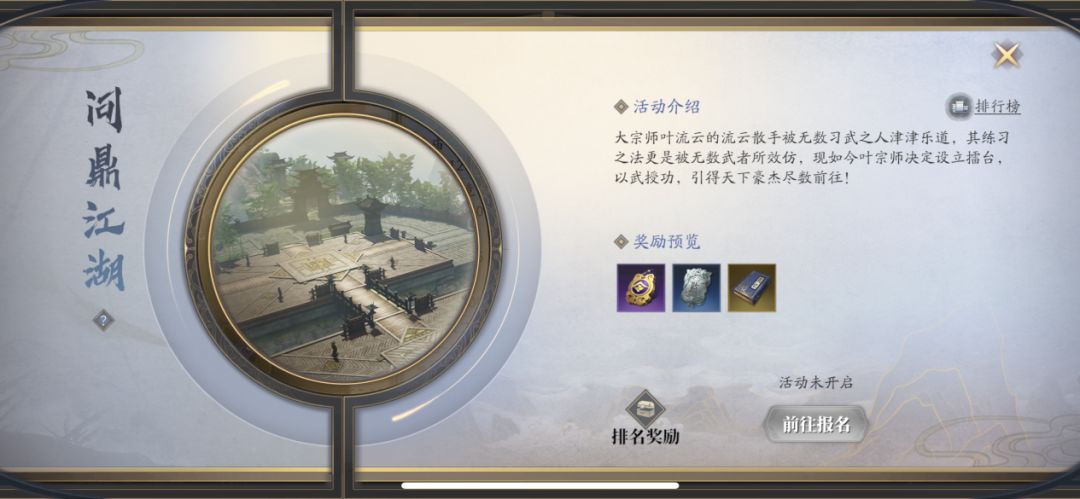 【问鼎江湖】在每周四、周六的19:50-20:20开启。四大宗师之一的叶流云,有一独门绝学“流云散手”,武林人效仿其招,却至今无人超越。如今,这位大宗师特设擂台,广邀天下武学者,授之功,传其名。在这,玩家们将组成3人小队,进行3v3组队竞技,获胜方进入下一局,共计五轮,最终按排名进行奖励。将获得赛季排名称号、游历点、监察院密令等奖励。