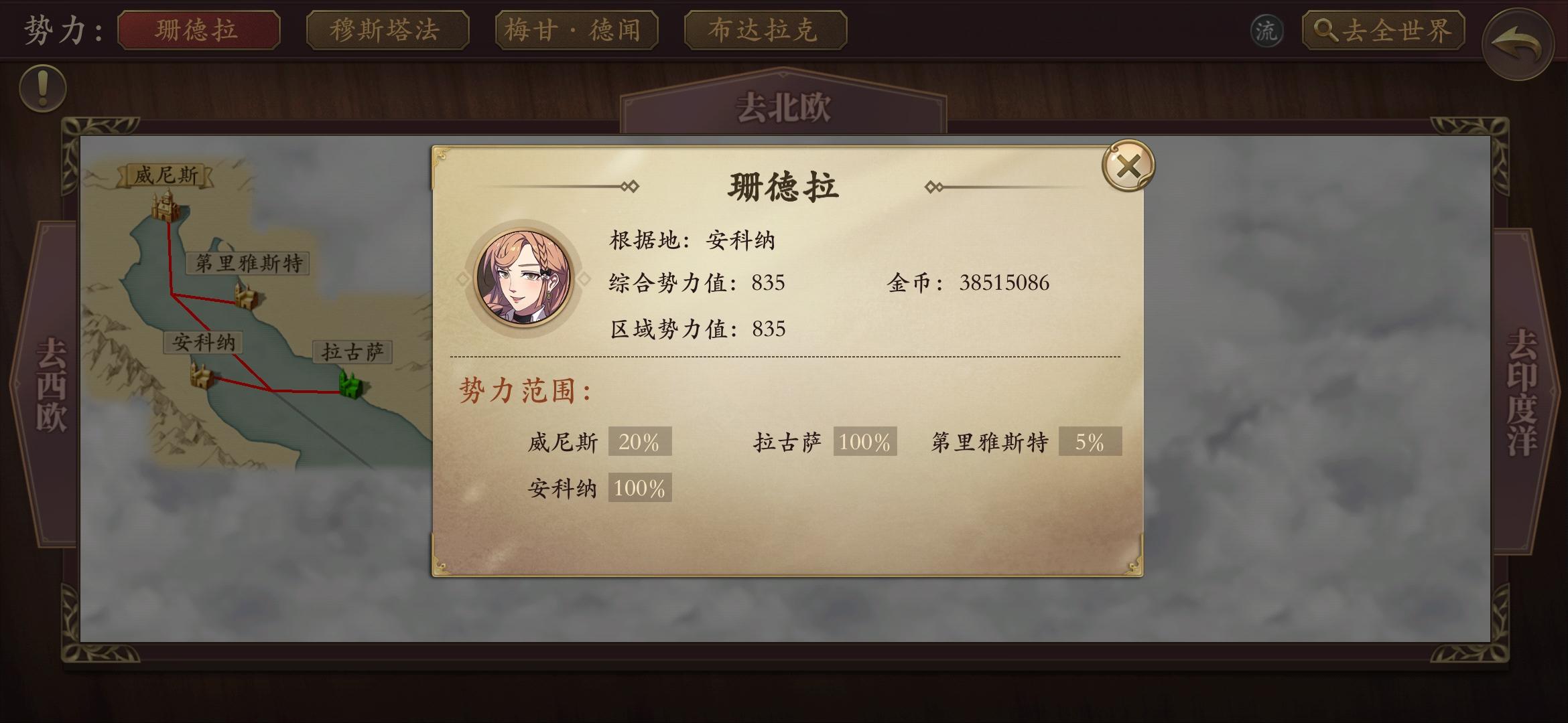 先上一些图好了。新开档,游戏内时间第一年1月8日(第一张图右上角)。金额3800万(会更多),然后为了证明一下不是第二年以后的1月8日,把区域其他势力值的占有度贴上,可以进游戏进行核对!