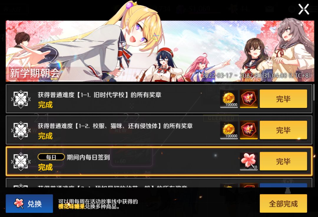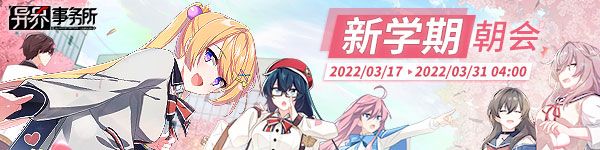 在校园里所经历过的一切,最终会由时间将它们装订成册,不会在浸溺于酣战时被提起,但会在手心握着樱花软瓣之刻,允了思绪如泉。限时剧情“新学期朝会-樱花最后盛开的校园”以及限定活动“新学期朝会-樱花校园”,将于本周四更新维护后上线,翻搅由校园而起的波澜!