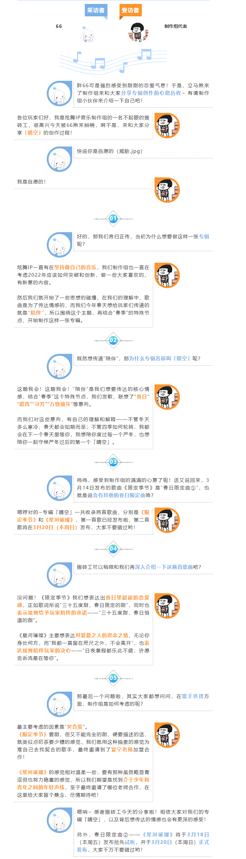 QQ炫舞系列·2022年春日限定专辑「晴空」,于3月14日正式和大家见面啦~所以66今天也特意为小主人们准备了一期特别节目哦~
