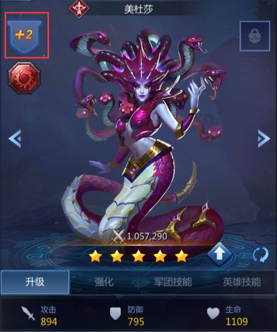 ④军团技能可以通过英雄强化,提升技能效果。英雄强化对技能提升非常明显,即使是普通玩家,门槛较低的五星英雄,+1也比较容易实现,如:美杜莎。