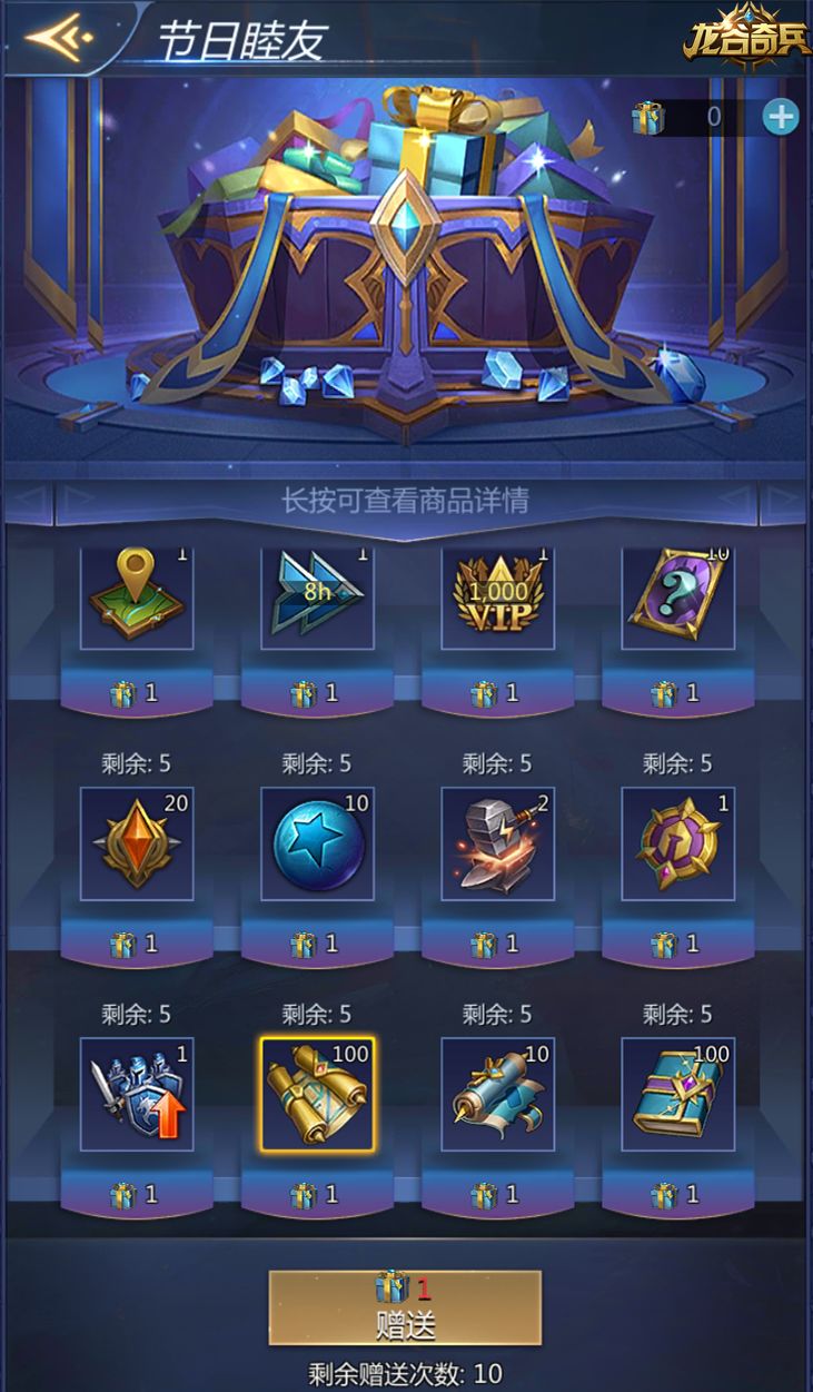 活 动 详 情1.消耗礼物盒,在礼物商店挑选心仪的物品赠送给盟友。