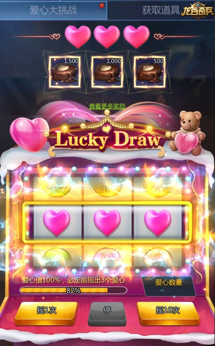 3.每抽奖一次,都会增加爱心值,爱心值100%的时候,必定摇出大奖。