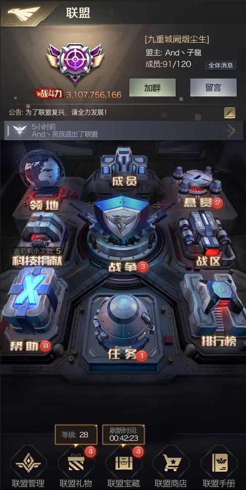我是手Q169区的老玩家了,刚刚进入红警的时候就在169区,这次3合正好合到了170区。说来也巧,170区是我们友区,我们直接合盟,组成了现在的联盟“九重城阙烟尘生”。