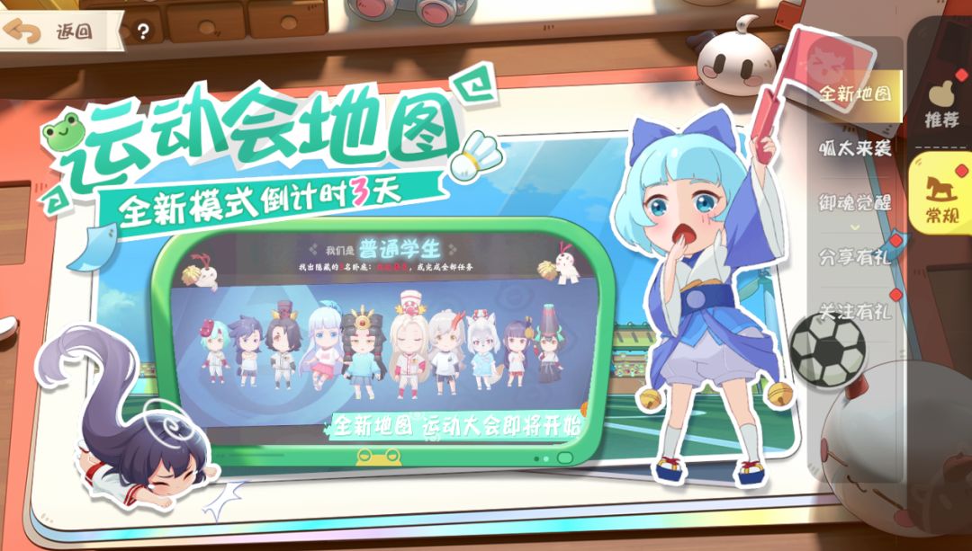 2022年3月26日,妖怪小班将会开放全新运动会地图,崭新的校园跑道、游泳池、棒球场等全新地图场景等你来探索。更有全新的地图监控设施,地图交互彩蛋、地图任务!赶紧到运动会来活动活动吧!