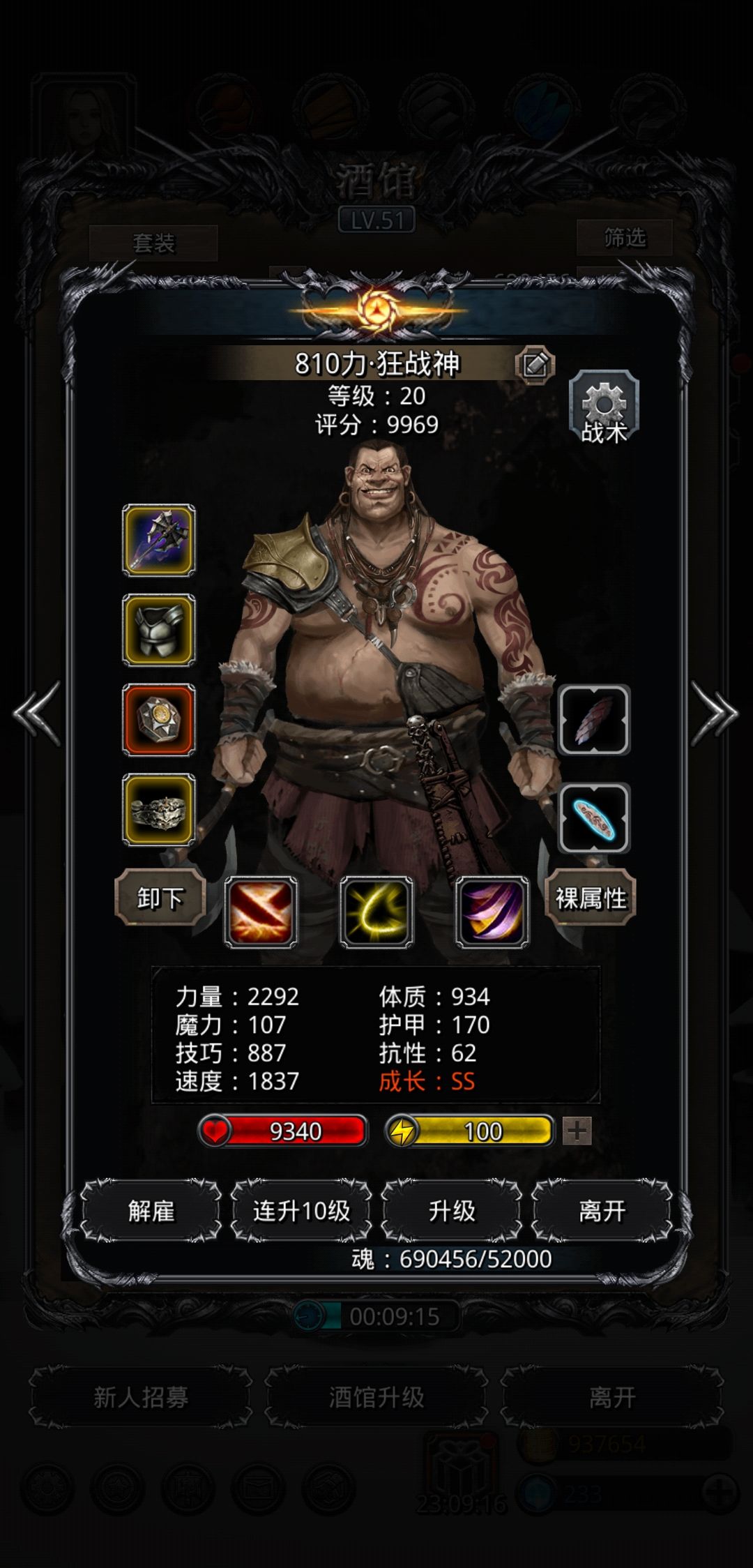 狂战战利品一个9点命中,一个7点命中,衣服是武斗者铠甲,锻成力速双110,饰品带了武斗指环力320速270