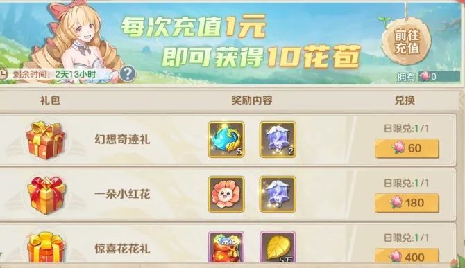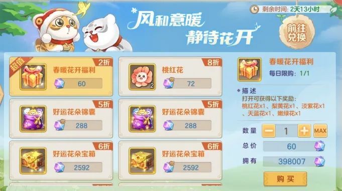 春日小铺内可选购花朵,花朵可用于兑换奖励宝箱