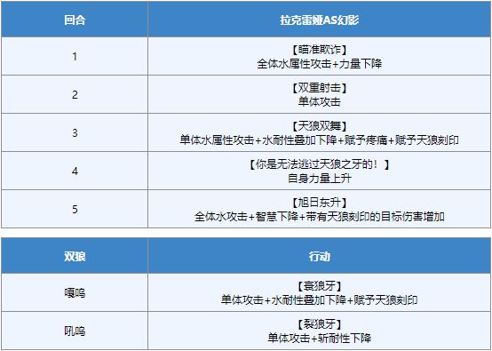 1、每5回合拉克雷娅幻影使用“旭日东升”会给我方造成巨大伤害,需要降力来应对。