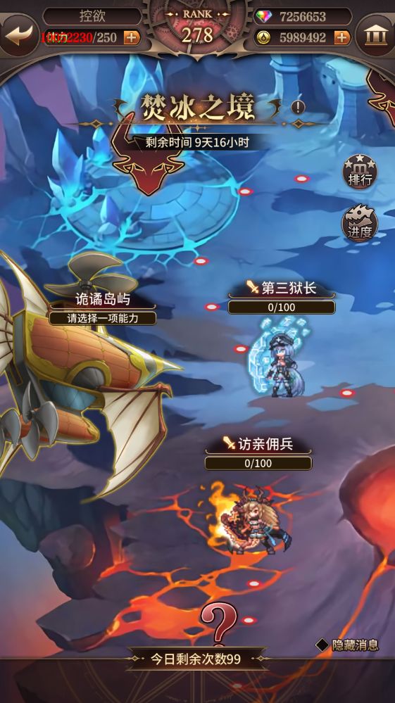 焚冰之境副本位于气候极端的位面边境,在不同气候的区域进行战斗角色具有的温度属性也不同,温度可以使角色某项能力得到大幅提升,但温度过高或过低都将非常危险。为了在挑战不同区域的关卡时避免危险,需要在副本中出现的技能事件中选择合适的增益。进行这些选择前,根据自身卡池特点与公会成员多进行交流协商将有助于提升公会通关速度。