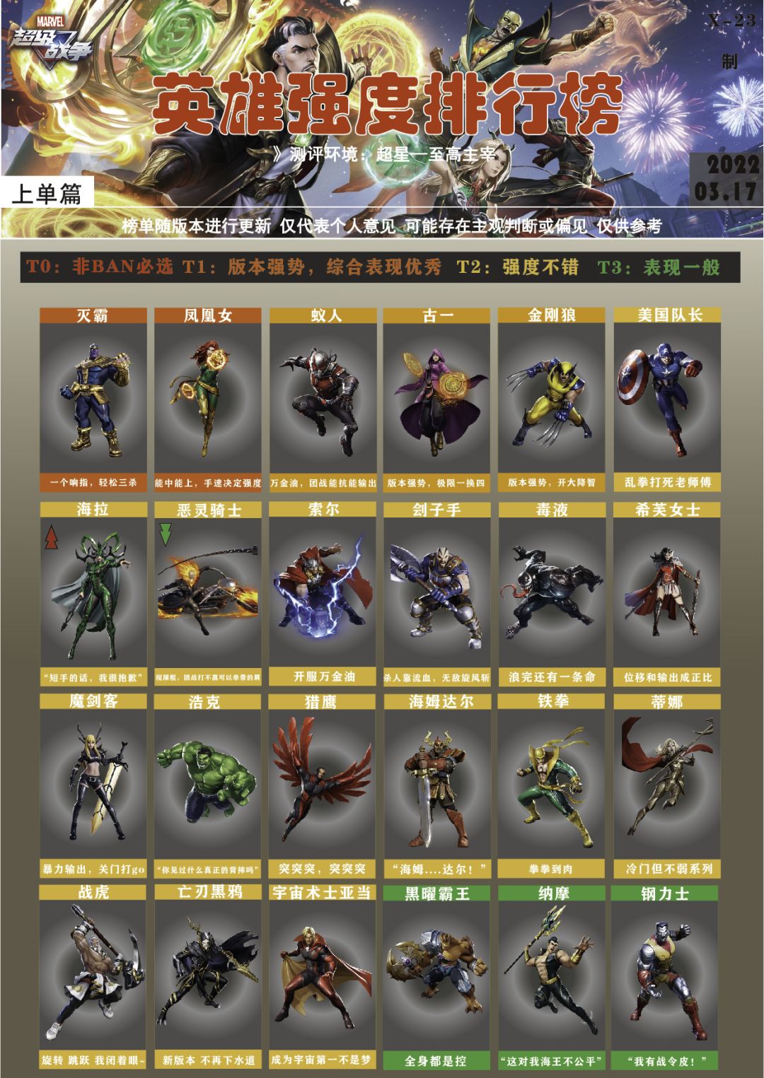 3.17版本【英雄强度榜】第④期 2022.03.17