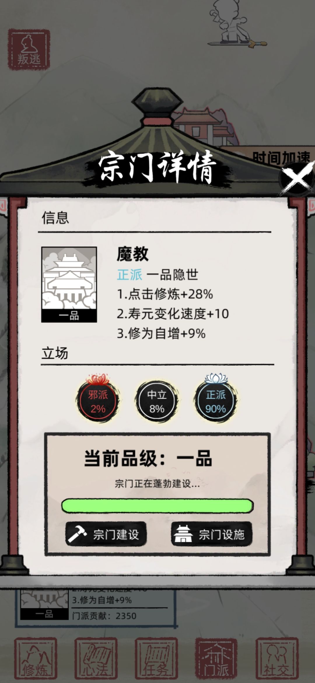 【其实可以不着急,先升级修为,因为后续你可以加入一品或者二品宗门,当然你着急也可以加入一个宗门,这里建议是加入正派宗门收益高,不多说】