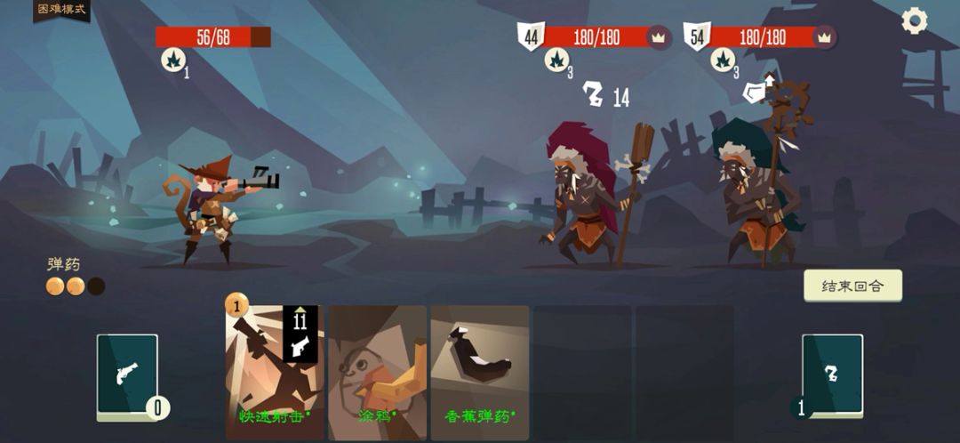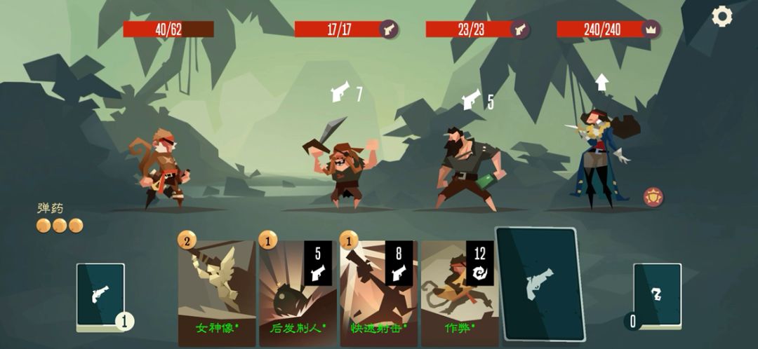 枪猴的被动可以使弹药每回合回复至两点,鼓励玩家前期拿远程攻击牌。相比于枪手的一弹两次的号令,枪猴的模仿号令没有弹药消耗,但只触发一次,这使它在与三费攻击卡配合时更加灵活,需要注意没有升级时模仿号令有移除词条。优先升级模仿号令与香蕉弹药,拿卡时除了过牌和遗物外还可以考虑拿优质高费远程攻击卡。