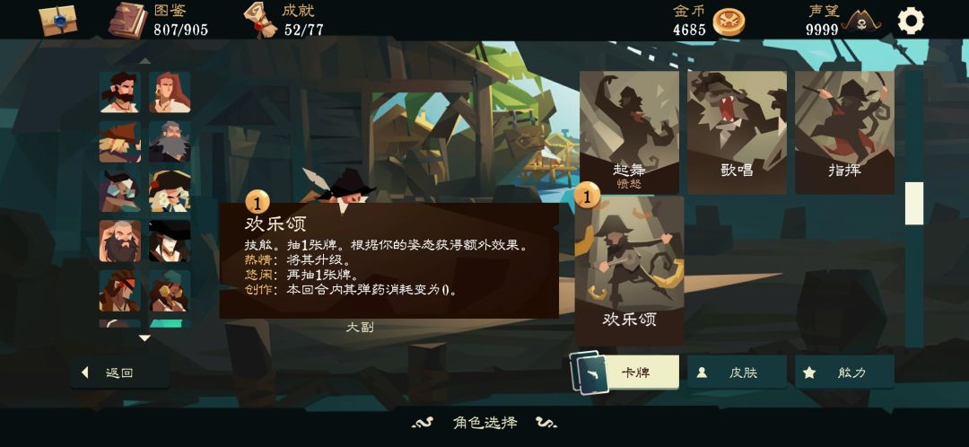 大副的最大特点就是每个皮肤对应不同的初始卡组与技能,从而有15套不同的初始卡组与能力。大副的成就青出于蓝需要使用大副通关所有困难难度世界,鼓励玩家在充分理解游戏机制后尽可能多地体验各种皮肤的强力卡牌与独特玩法。