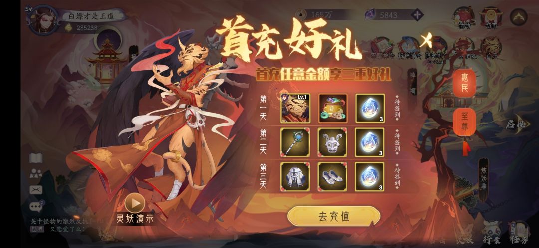 基本上第一天能推到第8章,极限福利好点的,限时的妖灵牛逼,第9章都是可能的。