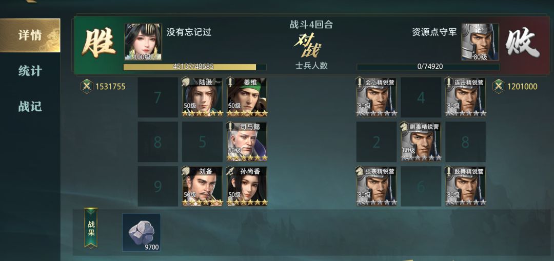 注意,上图战报上阵英雄等级均为50级。排除了官职、军团和战马的属性加成,策略府科技限制在25级,装备强化等级限制在50级,司马懿依然可以跨越30级的差距击败NPC。