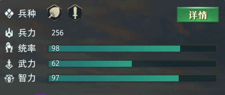 统率值和智力值的高低,对应武将的物理系和计策系攻防。