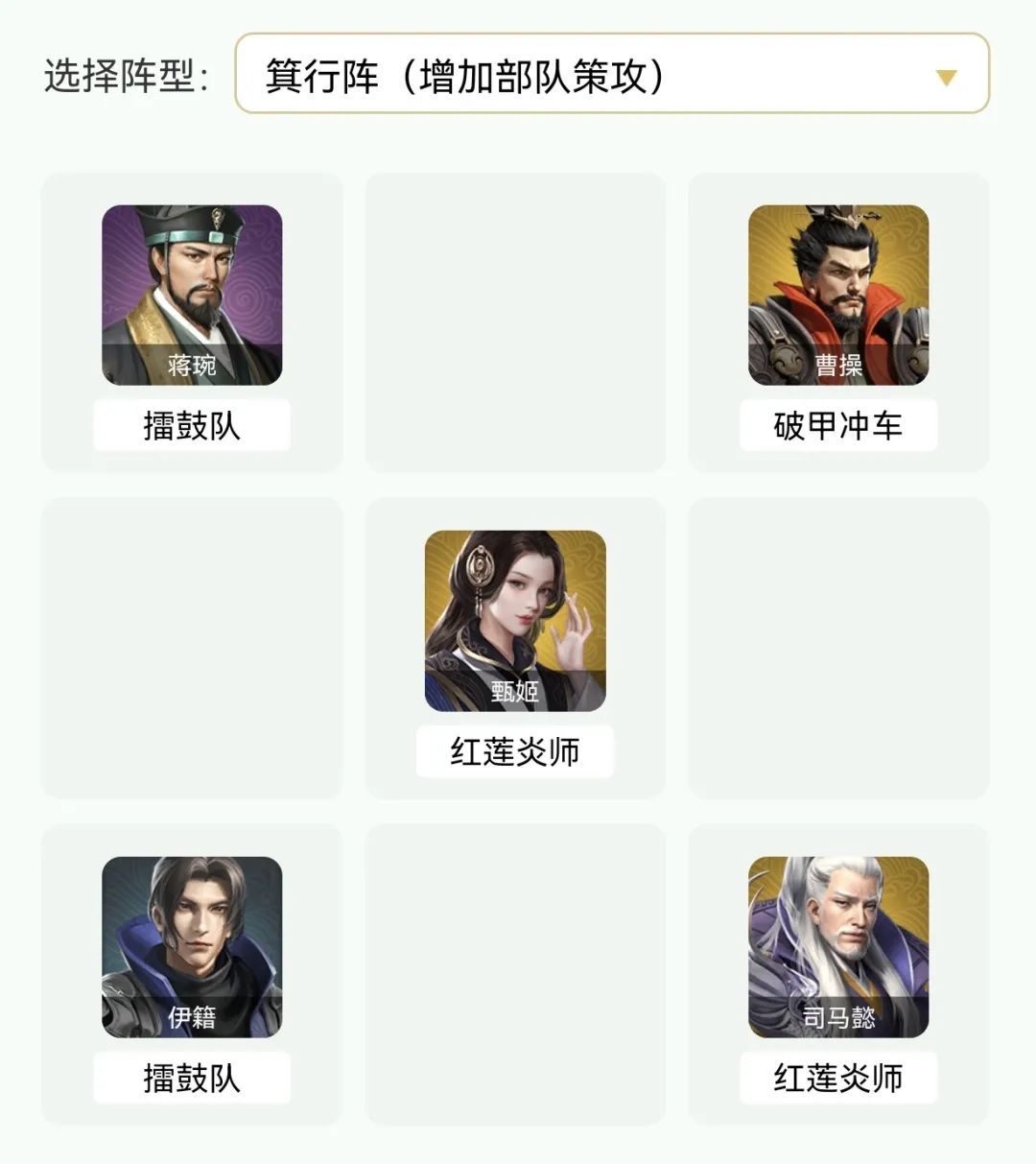 孙权为队伍提供策攻加成以及减伤,刘备持续支撑荀彧和司马懿的士气,可以在最少的回合打出更多的爆发。