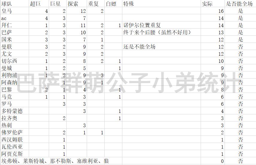 以上是包括现有的探索顺序,截止本次更新后俱乐部,国家队全部11人探索以上球队统计,探索有拆组合重构的意向,下周游戏更新后一天内再更新(本周探索,咨当没看见)