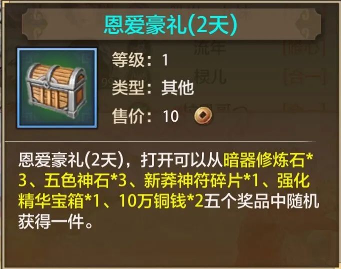玄天玉虚礼包打开后,可获得一个能够连续7天使用的乾坤福袋,内含丰厚奖励。