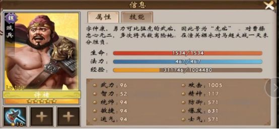 今天测试的目标是许褚,分别使用大斧/骨铠/大斧+骨铠/大斧+王追/骨铠+王追/,用不同的方案测出最终的伤害,对手选择城战里面的董卓,因为董卓的防御够高。先上许褚和董卓的面板图,大概了解下双方的实力差距。