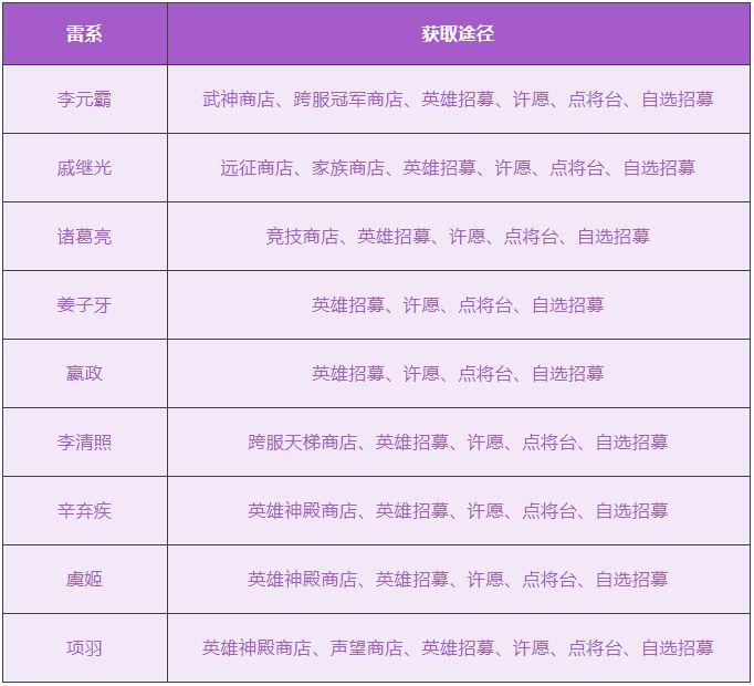 【五星英雄获取途径表】