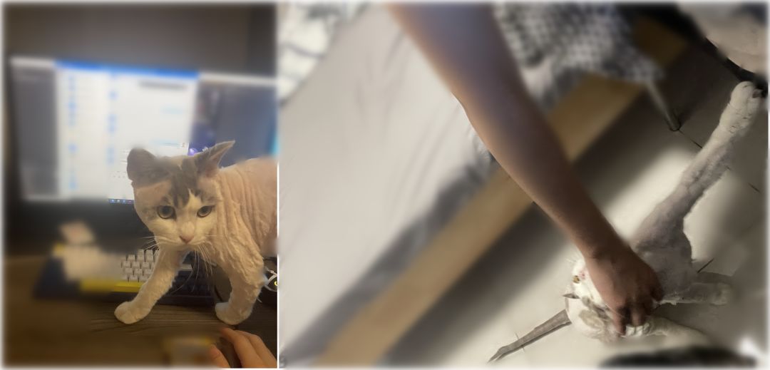 刚刚被剪了毛的猫猫,和我们项目最低颜值代表F41号之间的决斗。