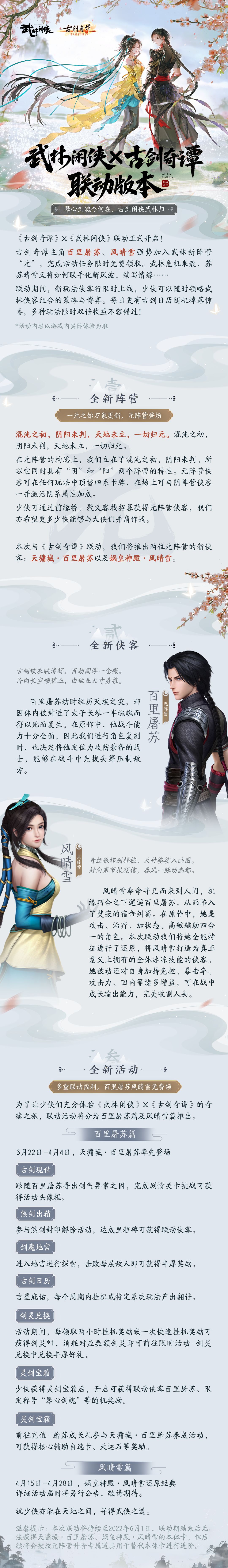 【版本前瞻】武林闲侠X古剑奇谭双厨狂喜,联动版本来袭