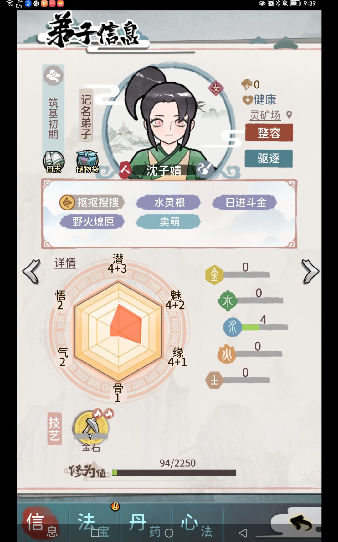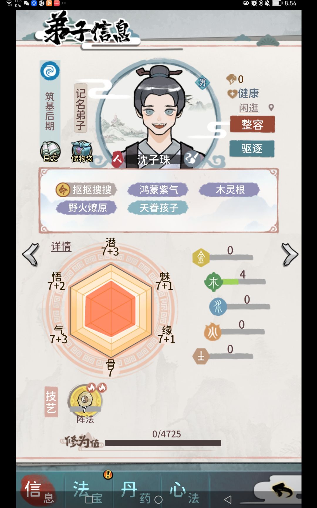 现在我的门派里有三类人,第一类是名字+灵根的各种打架牛人,第二类是名字+技能的种地工具人,第三类就是我沈家到处闲逛的儿子女儿们😂 。