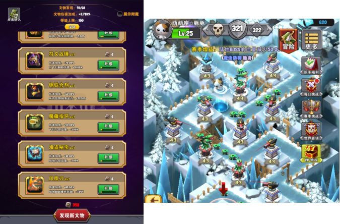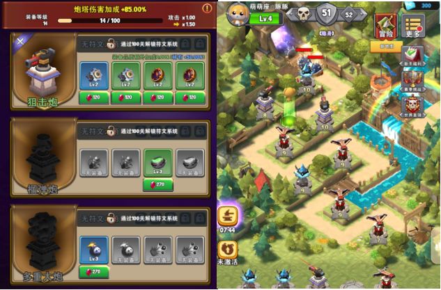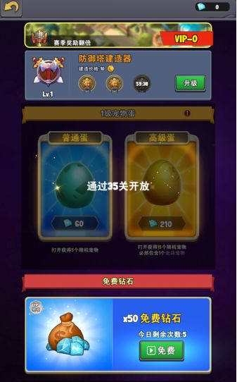 在商店上方有一个“防御塔建造器”,击杀一个BOSS级别的怪物会获得2个建造器零件,获得3个零件后可以手动升级建造器等级,升级后新造出的防御塔等级也会升高。
