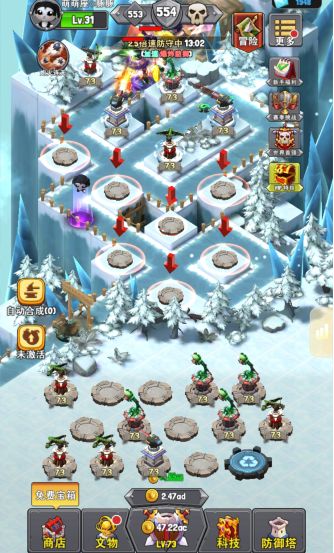 新手的前50层奖励为固定奖励,主要用于解锁4个基础塔。