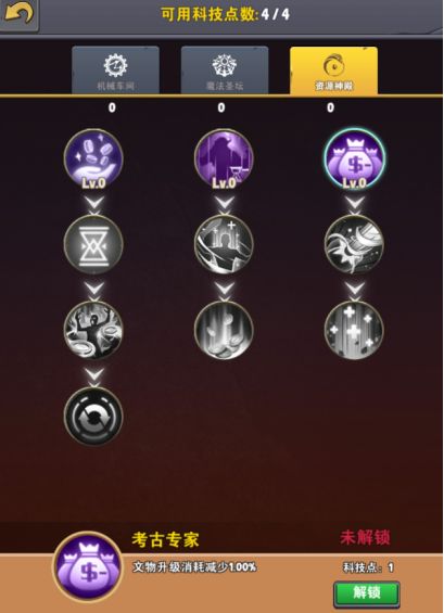 可以通过“科技”中的资源页面,升级考古专家,然后点出第三列第二个“以逸待劳”获取更长时间的加速,前期点出1级即可。