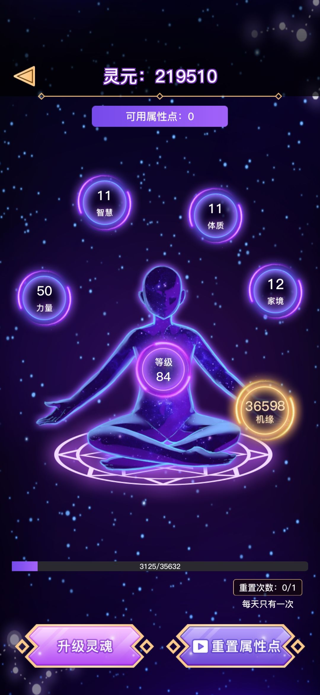 机缘系统:1.3.4新出的,开一把死了之后, 首先就是点开灵魂等级,然后等他出现气泡,然后点就行了(最高是获得在你那个等级能升20级的灵元)兄弟们,帮忙总结一下吧,我求你们了,最近都没有灵元养新老婆了啊
