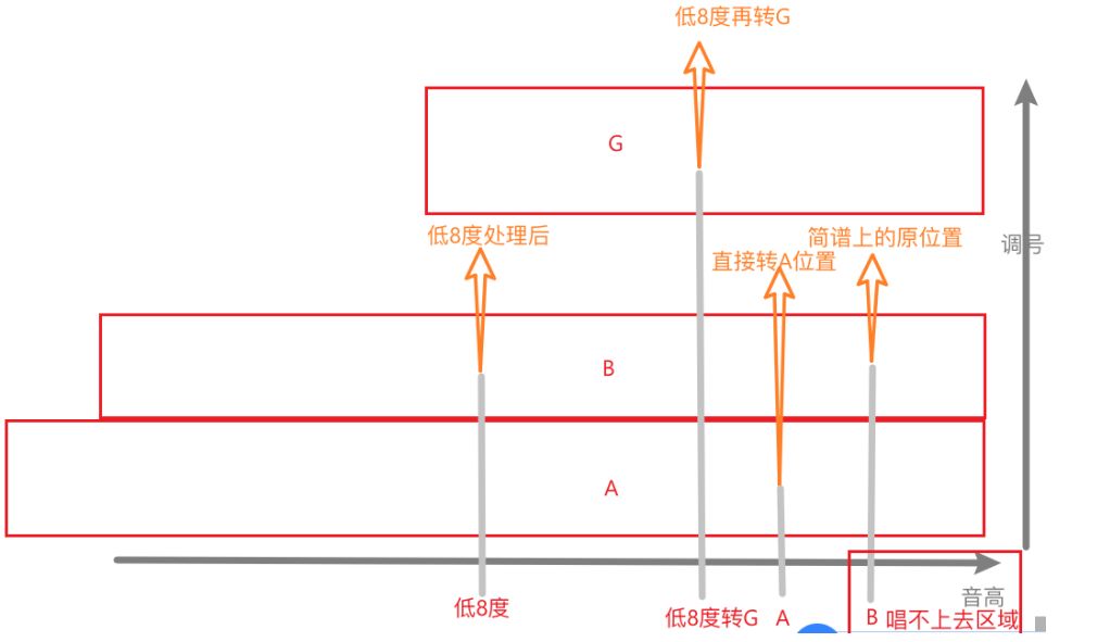 | 然是唱不上去的。所以可以将高朝部分直接换成更低的A调号试试,不进行低8