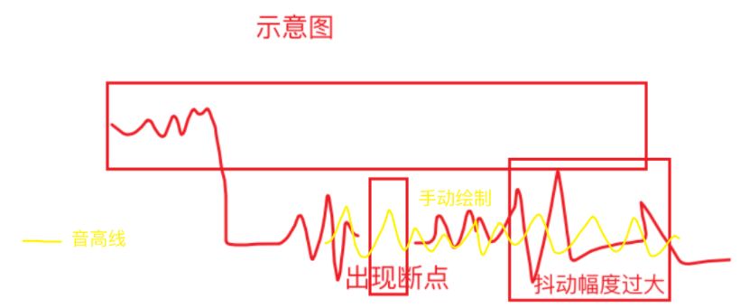 此时,我们需要使用音高线来修复断点,修正抖动幅度