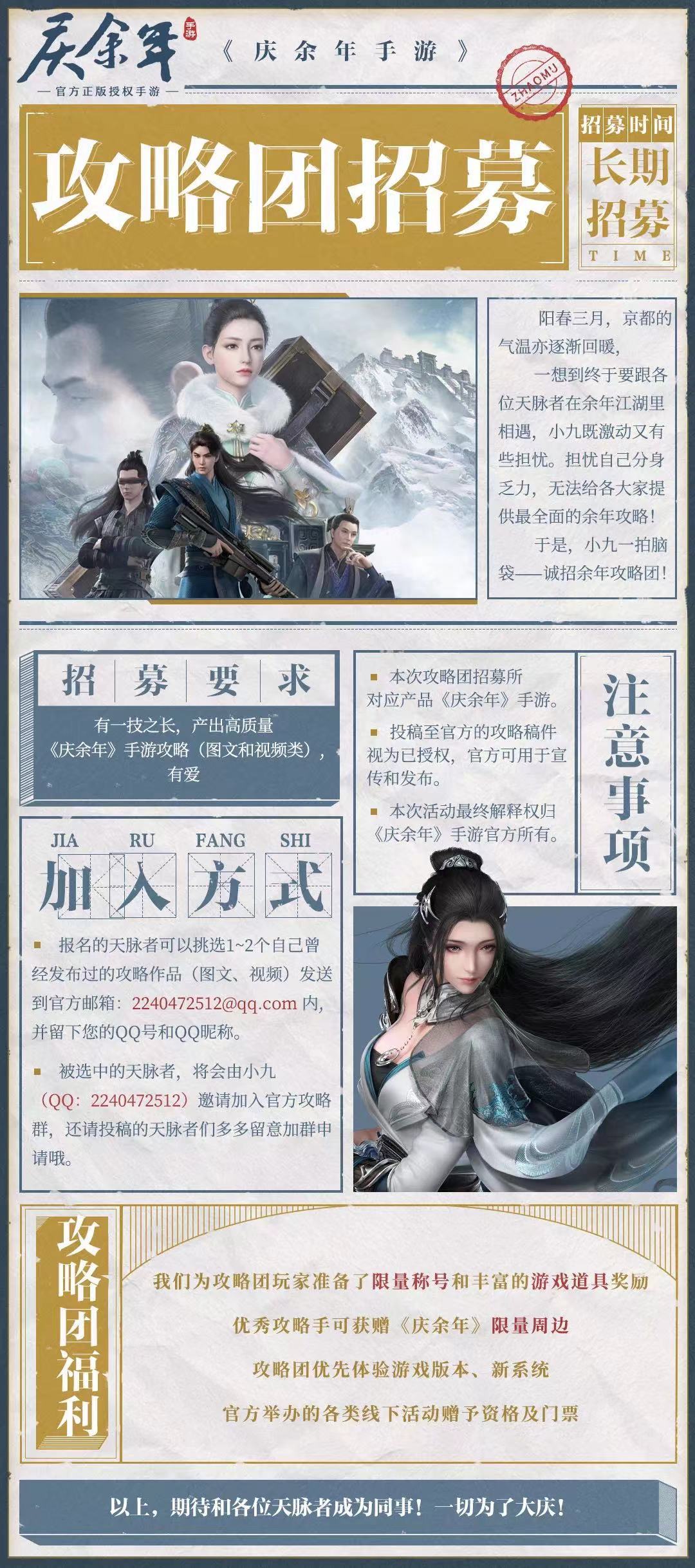 【《庆余年》手游攻略合集】攻略团持续招募中……