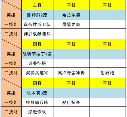 1.战魂萨拉丁一速利用诺曼叠连击,翼骑兵打伤害、破抵御,造成“敌方最低兵力”目标的出现