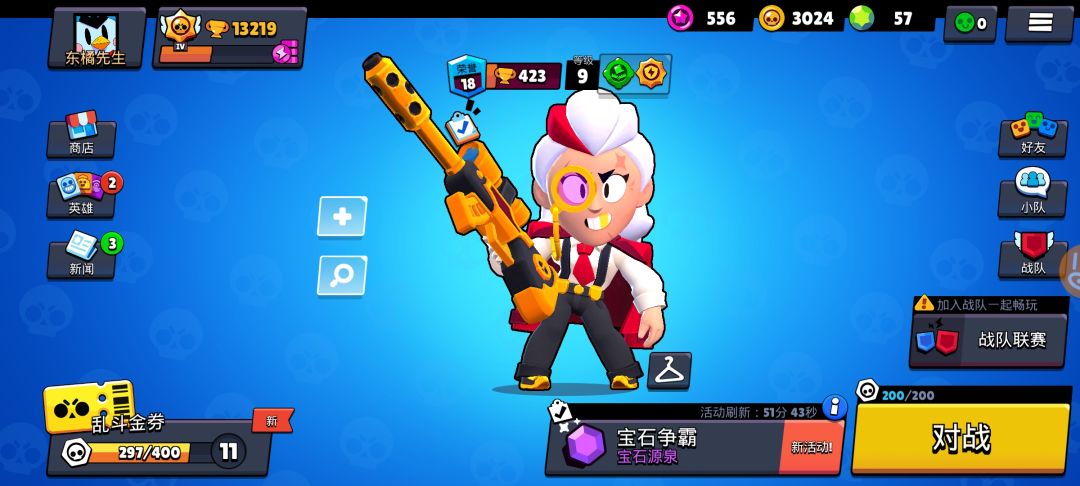 那时候,在一个晚上看到了乱斗抢先看,突然就很喜欢这个拿枪的强盗(这么描述贝尔有错吗?狗头保命)后来,那时候已经到了金臂狂潮末期,硬是拿钻石买了15个金券等级为了拿贝尔的皮肤,至今想想,那也是荒野乱斗的回光返照了,贝尔一度成了以前的莫提斯,拼命的练,每次开枪,带上弹尽粮绝,心里都会自信的默念一句:你得再跑快点!