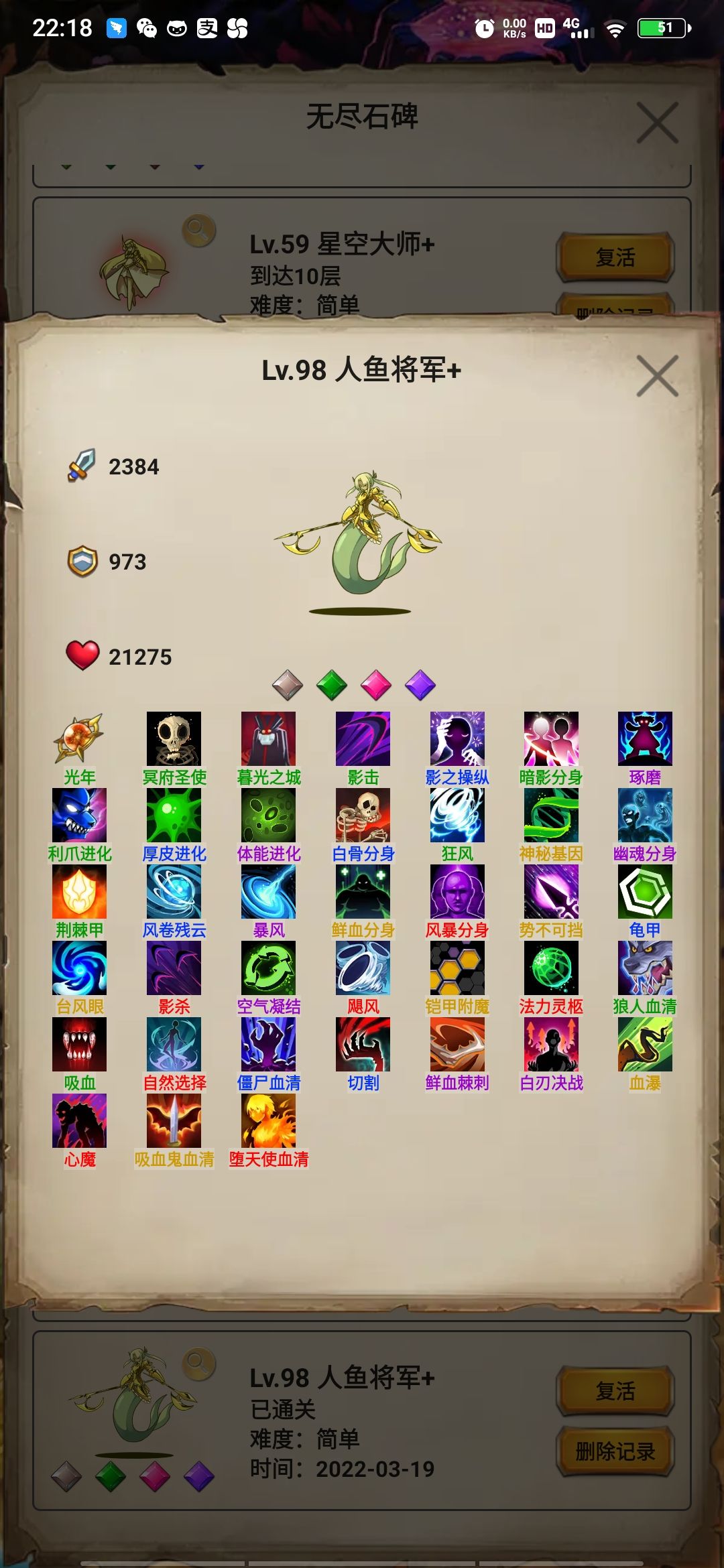 好家伙差点以为打不过,这120层boss,所有伤害免疫,还好有个debuff13回合结束,走普攻流的史诗级加强啊,刷属性100层前前往别点吸血鬼血清,沉默直接废了进化这一条加属性的。带无敌每个怪最多加18点左右攻击,12防御15生命。堕天使血清最多触发3次。吸血这条没啥用,基本小怪1回合打出无敌,boss3-5回合打出无敌,有护盾也吸不了血,减功也没用可以换其他的自然的丛林或者阴影的暴击普攻加一,一回合10次普攻等会试试地狱版